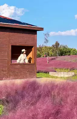 🌸It is recommended to go to Huahai Valley around 16:00 to wait for the sunset. Don't miss the panoramic view of the pink flower sea in the cabin at sunset! !