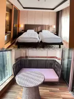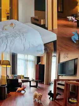 The room is spacious and bright, and the decoration style is full of Chinese charm🎋. I especially like the balcony in the room, where there is a big sofa rocking chair. It is so comfortable to sit on it, drink coffee☕, and admire the beautiful scenery outside😜! Moreover, the details of the room are also very well done, the bedding is comfortable, and the bathroom is clean and tidy🛀. It is worth mentioning that this is also a pet-friendly hotel🐶, with a dedicated pet room, which is really considerate for families with furry children💕.