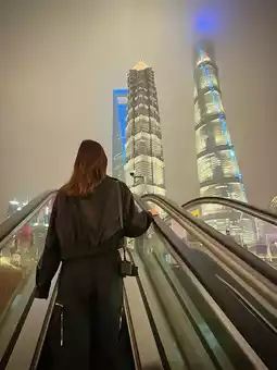 เราเดินมาจากวงเวียนหมิงจูค่ะ ถ้าไม่รู้จะเดินไปทางไหน ให้มองหาตึก 3 ตึก นั่นคือ Jin Mao Tower , Shanghai Tower , Shanghai World Financial Center พิกัดนี้มีมุมถ่ายรูปฮิตอย่างมุมบันไดเลื่อนที่มีฉากหลังเป็นตึก 3 ตึก รวมถึงสะพานลอยที่สามารถถ่ายรูปหอไข่มุกและตึก 3 ตึกได้ด้วยค่ะ