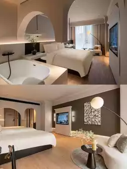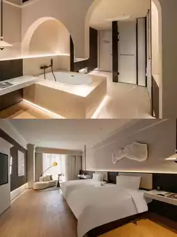 The rooms at the Treasure Hotel are large, with smart home appliances throughout, and the mattresses are high-end and comfortable to sleep on. ✨ The bedding is of good quality, clean and tidy, and the toiletries smell good and are complete. The bathroom is spacious, tidy, and clean.