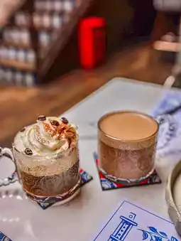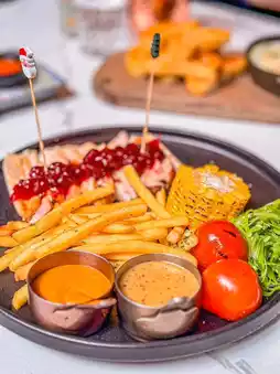 This is the perfect place for a party. With the brilliant blue and gold Christmas tree, Irish coffee with whiskey, and a photo shoot with friends, the Christmas theme is especially photogenic. Remember, the specials are only available for dinner, so come and experience this unique Christmas romance!