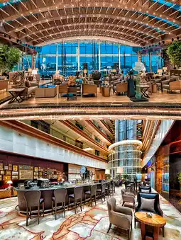 The all-day dining restaurant is located next to the landscape pool, with a beautiful environment. The restaurant offers a la carte all day, with a focus on Shanghai cuisine, combined with the local water town cuisine of Zhujiajiao, Qingpu, to provide guests with a wide range of dining options. The restaurant also features works by artist Xu Zhe and traditional Chinese wood carvings, creating a sophisticated atmosphere. The snack bar offers a buffet breakfast, with many Shanghai specialties made to order.