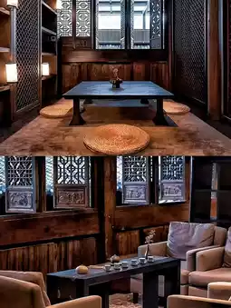 Entering the gate, on the left side of the courtyard is an ancient stage with carved and gilded dragons and golden pillars, and on the right side is the Ming Dynasty official hall, the Five Phoenix Building, with a plaque inscribed with "Da Fu Di" in the hotel lobby. The Five Phoenix Building is grand in scale, with "five rooms in front and seven rooms in the back, three entrances and two patios", and the Book Fragrance Pavilion houses hundreds of selected Chinese and foreign books, covering philosophy, religion, collections, calligraphy and painting, etc.