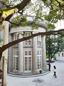 457 North Shaanxi Road, built in 1928, was originally the private residence of Hong Kong businessman Ho Tung, known as "He Dong Mansion." In 1958, it became the editorial office of the Zhonghua Book Company, and later served as the office of the Shanghai Lexicographical Publishing House. It is now an art and cultural industry park, and was declared an outstanding historical building in Shanghai in 2005. This is a Renaissance-style garden residence, one of many classical-style mansions designed by the famous Hungarian architect Hudec for foreign businessmen in the French Concession when he first arrived at the Klee & Co. According to Hudec's letters, he was responsible for the design of the interior furnishings and supervised the construction of the residence on site. According to records, the building originally occupied a large area, with a huge garden, and the main building covered an area of nearly 1,000 square meters, located in the center of the garden, facing south. It is a two-story mixed structure, combining French Renaissance and Baroque styles, with some decorative details reflecting the Art Nouveau style. Outside the building, there is a garden of about 3,000 square meters, with winding paths and rocks, small bridges and flowing water, a nearly century-old ancient vine, and two sturdy and towering century-old camphor trees, providing shade and making this residence in the bustling city exceptionally tranquil.