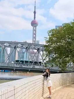 Let's go find some beautiful photo spots in Shanghai. Today, we'll take you to 2 places that are within walking distance, which are Qingren Flower Sight and Waibaidu Bridge. Both of these places can see the Pearl Tower.