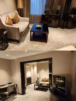 When I checked in, I was asked if I needed a toothbrush or razor, as these are not provided in the room and need to be collected at the front desk. I was also given a small bag of welcome fruit, but when I got to the room, I found that there was already a portion in the room. The elevator and room door both require a card to access. I was upgraded to a Single Bed Suite in advance, but the room is only 42 square meters. The room is decorated with warm wallpaper and carpet with dark furniture, and the age of the hotel is obvious, with signs of wear and tear and a slight smell. Although the two bathrooms are equipped with many mirrors, which look nice, there is a lot of rust, which is so obvious that I initially thought it was a special design. The furniture is actually quite nice, with leather cushions on the sofa, but it is not very comfortable to sit on. The bathroom feels cramped, the bathtub is small, and the shower head has a weak water flow.
