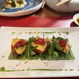 I went to eat at night, so I could see the view of the Oriental Pearl Tower, which is very close to the restaurant, with its colorful lights. On the other side of the river is The Bund, with its golden yellow lights and tall buildings that also show off their beauty. It was a very enjoyable meal, with beautiful and romantic views, perfect for a romantic dinner with a partner. But it's not just the beautiful atmosphere, the food served is beautifully designed and every dish tastes good. The service from the staff here is also excellent.