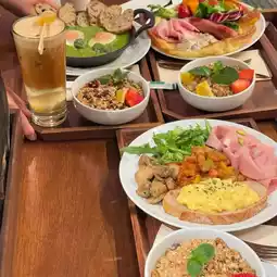 There are food, bakery, various drinks, and many counters to order
