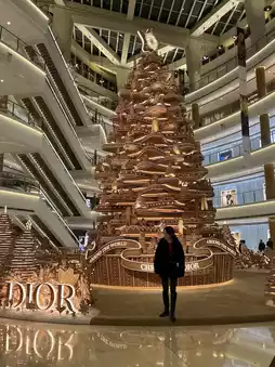 A 7-minute walk from Jing'an Kerry Center Department Store, Plaza 66 Shanghai Henglong Plaza Department Store has a large Dior Christmas tree.