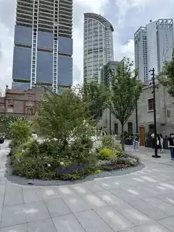 West Nanjing (南京西路) is a new area with buildings, exhibitions, and lots of places to take pictures because there are many zones, beautiful trees, and flowers. Around the area, there are restaurants, coffee shops to chill out, and many people come out to relax in this area. It's not very busy. It's a chic and chill area. Nearby, there are famous shops such as Butterful, Starbucks Reserve Roastery, and Chagee. Almost all the famous shops are here.