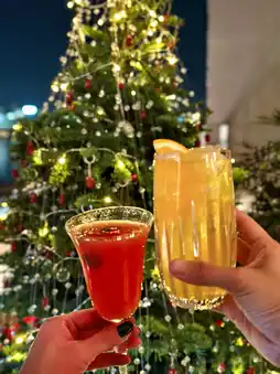 The Christmas flower wall 🌸 at the entrance and the Christmas tree 🎄 on the terrace with river views
