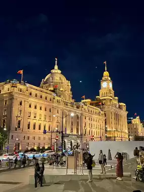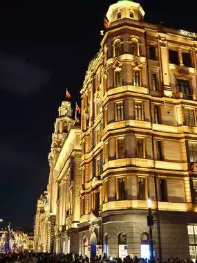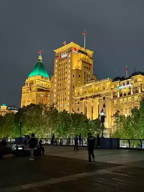 I'm sharing the lights of The Bund at night. When the lights are on, everything is golden. It's incredibly beautiful and magnificent. You have to give in to the Chinese for this kind of lighting. They really put their heart into it.