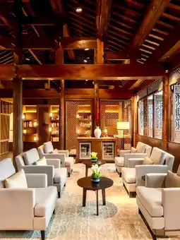 Zhujiajiao Ahn Luh Hotel fully preserves the artistic conception and beauty of the building and the environment itself. The lobby is the Wufeng Tower, which is known as the "No. 1 official hall in Jiangnan" among the ancient buildings of the Ming Dynasty Hui style. Its shape is magnificent and its manufacturing process is extremely complex. As soon as you walk into the lobby, you feel as if you have traveled back to the Ming Dynasty. Across the lobby is a modern garden. The beauty of Jiangnan gardens lies in the ingenuity in the details. A selection of 132 kinds of plants make the ancient buildings and modern villas complement each other and play a great transitional role.