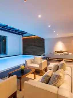 The hotel's interior is elegant, blending traditional and modern design elements to create a warm and luxurious atmosphere.