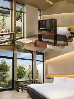 The hotel has 35 villa-style rooms, each with a courtyard and private garden, ensuring a high degree of privacy and spaciousness.