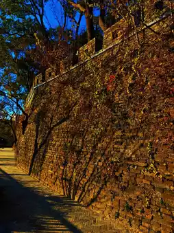 There is an ancient city wall ruins park in Chuansha Town, Pudong New District, Shanghai. After parking my car in the ancient town parking lot, I walked onto the moat bridge. On the left, I saw a section of the ancient city wall from the Ming Dynasty standing tall by the river. The ancient city wall was built in 1557 to resist Japanese pirates. The city wall is about 2 kilometers long and 4 meters high. Only about 80 meters of the southeast section remain. Entering the park and coming to the city wall, you can see