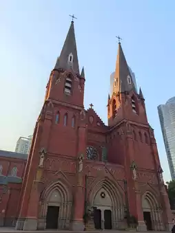 Xujiahui Catholic Church is a beautiful Gothic building and is known as the most beautiful church in Shanghai⛪. The church's exterior is red, with pointed arch doors and windows, exquisite sculptures and stained glass. The church is open to visitors from Tuesday to Saturday. (See the last photo for more details.)