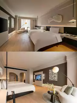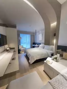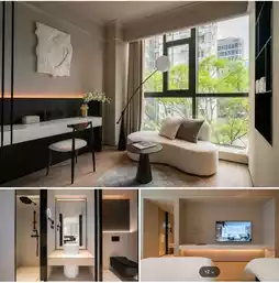 ✅The room is spacious and comfortable, equipped with smart Baidu (lights, curtains, sound, alarm clock) that can be controlled at any time; Xiaomi TV is very easy to use, watching movies is super comfortable~✅The facilities are complete, and the room has floor-to-ceiling windows with good lighting! The drinks in the fridge are free to drink, and there are also bagged Nestle coffee and black tea