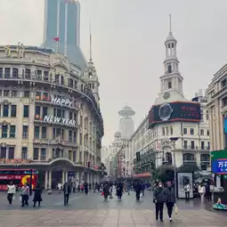 Nanjing East Road is a pedestrian street about 1.6km long that runs from 'People's Square' to 'Waitan'.