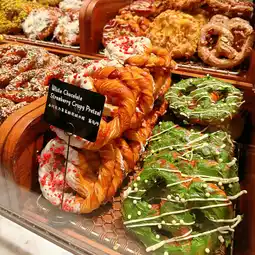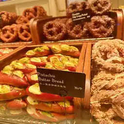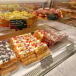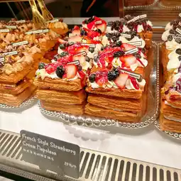 The shop is beautifully decorated, giving it a French atmosphere. The crystal lamps in the hall are sparkling beautifully. The shop has 2 floors. There is an outdoor area on the top floor for sitting and eating.