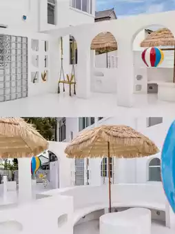 This is a three-story white Mickey Mouse castle, more fairytale-like than Disneyland! As soon as you enter, you'll see an Instagram-style slide, a two-meter-tall Mickey Mouse doll, and a huge starry sky infinity pool 😍! It's a dream come true for girls, and every photo is a masterpiece 🎀.