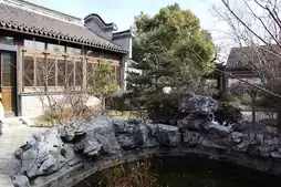 The architectural layout of Nan Garden follows the traditional courtyard style, with four sides enclosed and a spacious patio in the middle, ensuring both lighting and ventilation. The main structure of the building is mainly wooden, with thick beams and columns and exquisite carvings, showcasing the superb craftsmanship of ancient artisans. The roof is covered with blue tiles, with flying eaves and upturned corners, featuring smooth lines and a strong Jiangnan style.