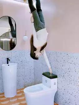 Tips: Pretend to grab the sink to make the photo more interactive!