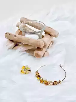 After making the ring, I also used the remaining glass beads to make a matching bracelet, which is a perfect match. The boss also taught me how to adjust the size. The finished product is so beautiful that it makes me scream.