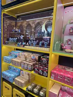This is a group box store. There are many surprise boxes to choose from. The store is very big and has many floors. There are also a lot of products. Today, we bought a butter bear surprise box for 69 yuan. There are many types. The store doesn't only have surprise boxes. There are also models, building blocks, and many more. If you go to Shanghai, I recommend you to try it. There are a lot of products.