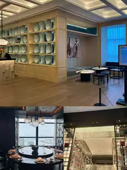 During the day, you can enjoy various art exhibitions 🎨 here, from painting to sculpture, and feel the unique charm of art. You can also enjoy a leisurely afternoon tea ☕ at the 57th floor lobby bar, and time seems to slow down.