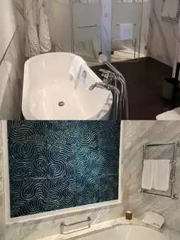 There are many porcelain elements from the public area lobby to the room, but the color matching is unexpectedly not old-fashioned, which is very suitable for beautiful women to take pictures! Especially the bathtub and cloakroom, which can separate the two areas but are not crowded, and the design of the large floor mirror increases the sense of space. The lighting in the whole room is very soft. The matching products are from an Italian perfume brand, and the smell is very good.