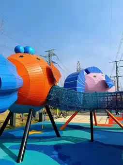 👉 Outdoor children's playground: Although the outdoor children's playground here is not large, there are many play items, such as climbing nets, slides, bouncing beds, rocking horses, musical instruments, etc., enough for children to have fun for half a day;