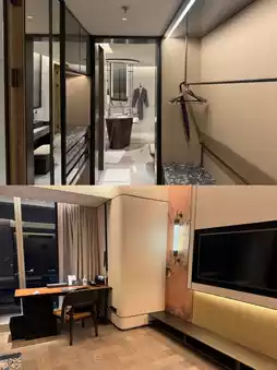 The hotel has a very modern appearance, with smooth and elegant lines, which is very eye-catching among the buildings. Walking into the lobby, the high ceiling is matched with gorgeous crystal chandeliers. The art paintings on the wall complement the exquisite furnishings. Every detail shows a sense of luxury. The check-in staff at the front desk were friendly and efficient, and their favorability instantly skyrocketed.