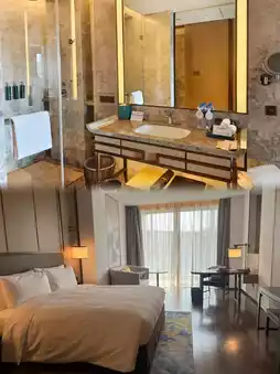Step inside, and you'll be captivated by the hotel's unique design. The fusion of modern and traditional elements exudes elegance and sophistication in every detail.🖼️ The guest rooms are spacious and bright, with floor-to-ceiling windows framing lush greenery, creating a living masterpiece.🖼️