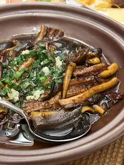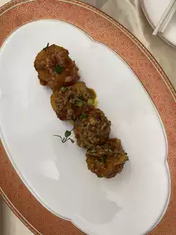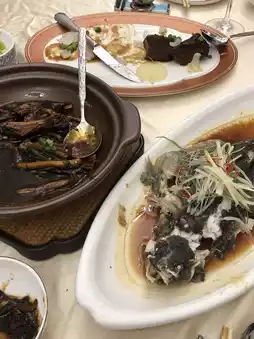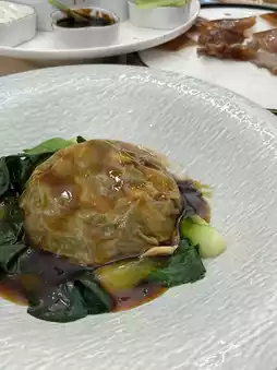 The meal started with four beautifully plated appetizers: the smoked fish had an incredibly crispy outer layer with perfectly balanced sauce, the salted chicken was packed with flavor, the jellyfish head was super crunchy and refreshing, and the dish was garnished with cucumber for an extra touch. There was also tofu skin stuffed with mushrooms and carrots—light and delicious!