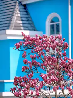 🏰The blue “Santorini” style castle is very photogenic. On the northern hillside behind it, there are some purple magnolias, creating a charming scene with the blue castle.