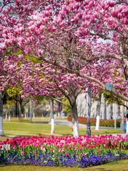 The only park in Shanghai where magnolias and tulips bloom together