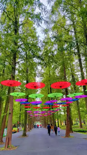 Dongping National Forest Park is located in the north-central part of Chongming Island, Shanghai. It is the largest man-made plain forest in East China and a national 4A-level tourist attraction. The park covers an area of 3.55 square kilometers, with a forest coverage rate of over 90%. Inside the park, there are several themed gardens such as the Osmanthus Garden, Plum Blossom Garden, Cherry Blossom Garden, and Maple Garden. Visitors can explore the park by forest train, sightseeing electric car, bicycle, and other modes.