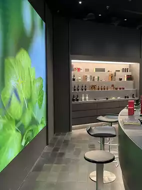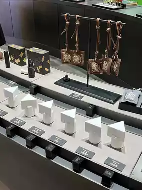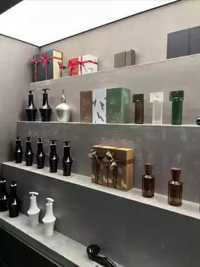 The perfume and fragrance bottles are very unique, with irregular shapes adding a playful touch. The store also has some accessories, and the layout is especially comfortable.