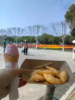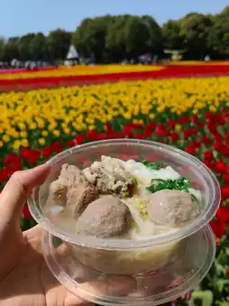 During the Flower Festival, there are many food stalls where you can eat next to the tulips, it’s really chill