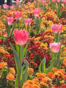 Velvety pink tulips paired with European-style architecture create a Monet garden vibe in every snap, making it the star spot in your social circle!