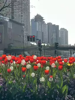 There are so many tulips🌷 in downtown Xujiahui! Perfect for a weekend city walk.