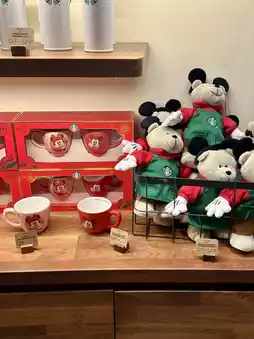 This time, we introduce the Starbucks located in Disney Town at Shanghai Disney! Like Tokyo Disney Resort, there is no Starbucks inside the park at Shanghai Disney 🥲 However, there are drinks, food, and exclusive merchandise that you can't get in Japan 🤩 There are also Disney collaboration goods 🧸🐭 This store has a dining area on the second floor 🪑