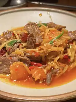 Dian Niu Hotpot is a hotpot restaurant from Yunnan Province, China! Yunnan hotpot is known for its unique combination of sour and spicy flavors, leaving a strong impression. The natural fermentation of sour radish and sour cabbage creates a distinctive taste that sets it apart from regular hotpot. Highly recommended for those who want to experience a new world of hotpot! Especially, the beef with mint grass offers a unique texture, and the rose vinegar adds an exotic aroma, so be sure to try them together!