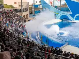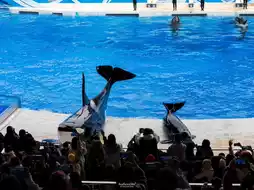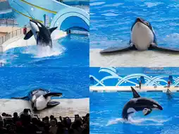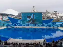 🐋 Beluga & Orca Whale Show – Giant whales jump into the water and shoot through the center of the arena. Take pictures from any angle and they will look amazing!