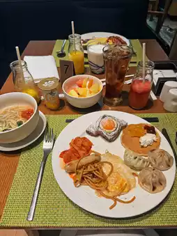 The service is flawless! The front desk staff are super nice, with excellent service attitude and attention to detail! The breakfast is also very rich, the noodles and small wontons are great~ plus there are xiaolongbao! A food lover’s delight!