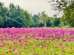 In spring, you can enjoy plum blossoms and rapeseed flowers; in summer, sunflowers; and in autumn, cosmos flowers, allowing you to appreciate seasonal blooms throughout the year. The lawn is also spacious, making it a very pleasant park for picnics on weekends and other days.