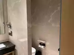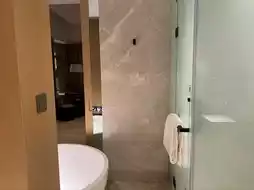 The bathroom was designed with the toilet and shower separated for convenient use, and there was also a large bathtub. The bathroom had a sliding door, so when opened, you could enjoy the outside view.