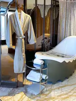 Their luxurious rooms & suites possess spacious, polished, art deco-style rooms with high-end amenities, plush bedding. It offer free Wi-Fi, flat-screen TVs and floor-to-ceiling windows with city views. The room also features opulent living room and marble bathrooms with designer toiletries and deep soaking tub.