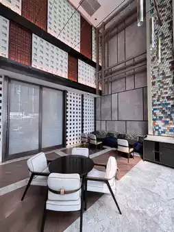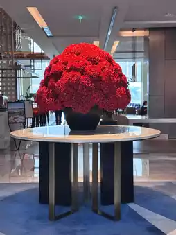 The Club Lounge is located on the 6th floor and opens from noon, offering afternoon tea and Happy Hour. Guests with Club Lounge privileges receive breakfast at the all-day dining restaurant. The indoor space is cleverly divided using sculptures and soft partitions into sofa areas, high table zones, and workspaces. There is also a large outdoor terrace.